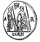 Si l'on met à part le denier de la gens Caesia, qui nous donne l'image officielle des Lares Praestites avec le chien, on peut dire que nous savons fort peu de chose sur la représentation plastique des Lares sous la République. Tibulle nous apprend que pour la maison rustique ils étaient grossièrement taillés dans une souche de bois, ce qui est le cas de toutes les divinités champêtres, comme Silvanus, Faunus, Priape, lesquels ont d'ailleurs avec les Lares plus d'un trait de ressemblance. Cependant, nous savons d'autre part que, dès les temps de la deuxième guerre punique, l'art s'attachait à représenter les Lares d'une façon moins primitive. Un fragment d'une comédie de Naevius nous montre un peintre du nom de Théodote qui, assis dans la cella d'une chapelle et mis à l'abri sous des planches, peint pour les Compitalia des Lares dansants : Lares ludentes. Il n'est pas douteux que dès lors s'élabore le type que nous allons trouver réalisé à partir d'Auguste par de nombreuses statuettes de bronze destinées au culte des Lares domestiques. |