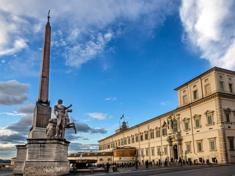 Cet obélisque fut découvert en même temps que son jumeau en 1527, mais laissé en place jusqu'en 1782, date à laquelle le pape Pie VI le déplaça sur la place du Quirinal. Cette date tardive explique que seuls les groupes de chevaux figurent au milieu du XVIIIe siècle sur la gravure de Piranèse, et pas encore l'obélisque.