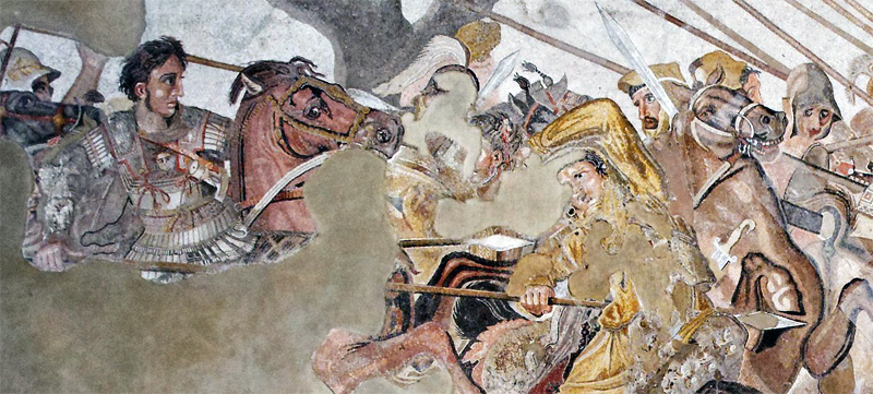La pique d'Alexandre transperce un fantassin perse - Détail de la mosaïque d'