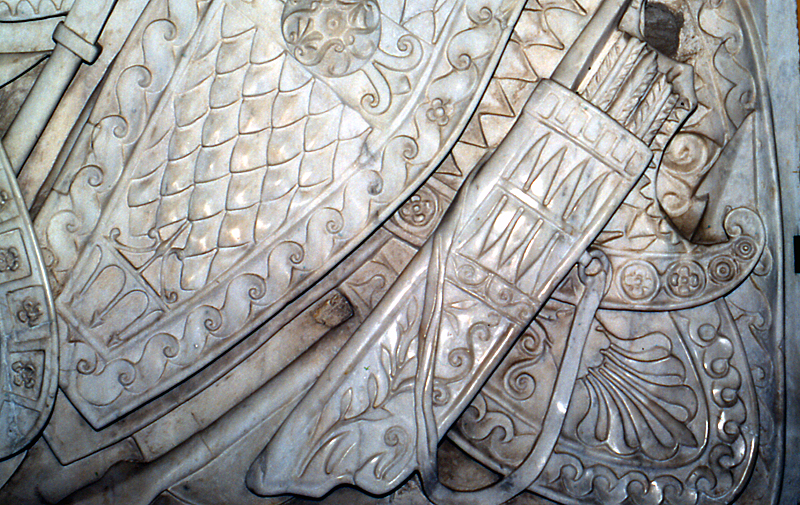 Carquois dans un trophée d'armes - Haut-relief en marbre - Ier s. apr.JC - Casa de Pilatos, Séville, 2002 - © Agnès Vinas