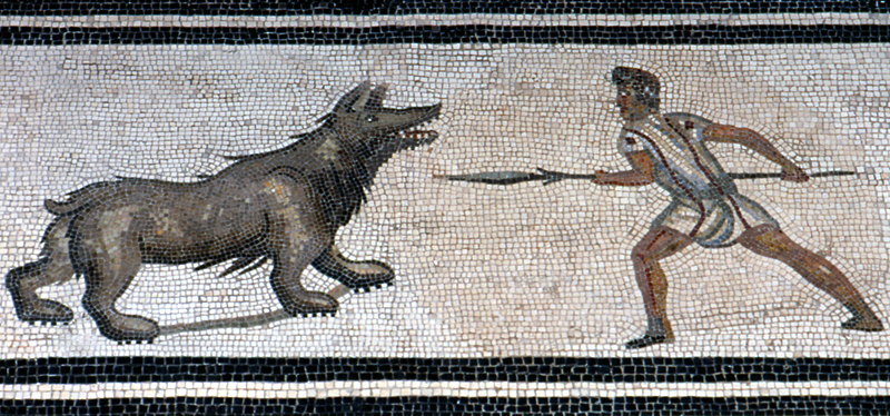 Epieu de chasse (Cic. ad Fam. VII, 1) : arme redoutable avec une longue et large tête de fer (Mart. XIV, 31 ; Virg. Aen. IV, 131), généralement en forme de losange, quelquefois munie d'une garde (mora) pour empêcher la pointe de pénétrer trop avant (Grat. Cyneg. 108-110). C'est cette arme même que représente la gravure, empruntée à une fresque du tombeau des Nasons, sur la voie Flaminienne, près de Rome. Elle fait connaître en même temps une singulière méthode qu'employaient les anciens pour prendre au piège les bêtes féroces au moyen d'un miroir disposé devant une cage. La manière la plus ordinaire de se servir de l'épieu, que l'on employait très rarement, ou pour mieux dire jamais, comme arme de jet, est figurée dans les gravures des mots venatio et venator. |