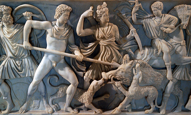 Sarcophage de la chasse au sanglier de Calydon, avec Méléagre et Diane - IIe s. apr.JC