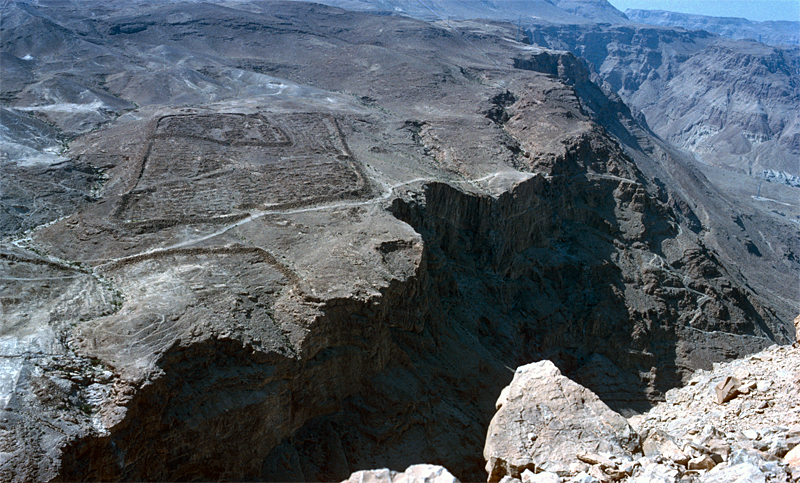 Vestiges du camp F de la Xe légion Fretensis vus depuis la forteresse de Massada - 72-73 apr.JC - © Charles Cavenel, 1989