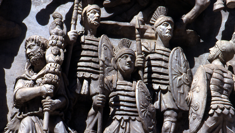 Porte-enseigne assistant à la decursio de l'empereur Antonin le Pieux - Haut-relief de la Decursio, après 161 apr.JC