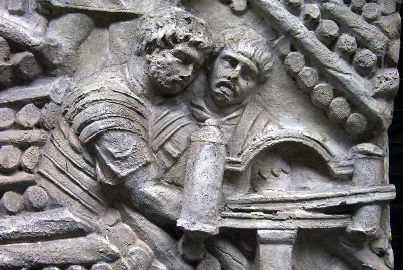 Deux ingénieurs règlent le tir d'une catapulte - Moulage de la colonne Trajane, 113 apr.JC