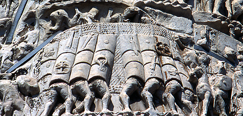 Attaque en tortue - Colonne de Marc-Aurèle, 176 à 193 apr.JC - Piazza Colonna, Rome, 2001 - © Agnès Vinas