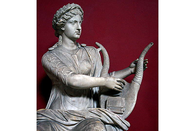 Statue de Terpsichore, muse de la danse, jouant d'une lyre en carapace de tortue