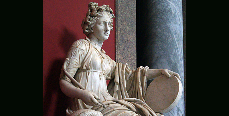 Statue de Thalie, muse de la comédie, jouant d'un tympanum qu'elle frappe avec un pedum -