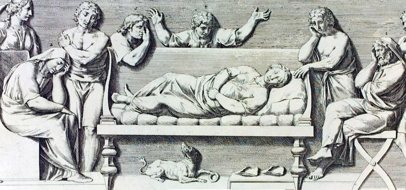 Déploration funèbre (détail) - Gravure de Pietro Santi Bartoli in Admiranda romanarum antiquitatum, planche 72