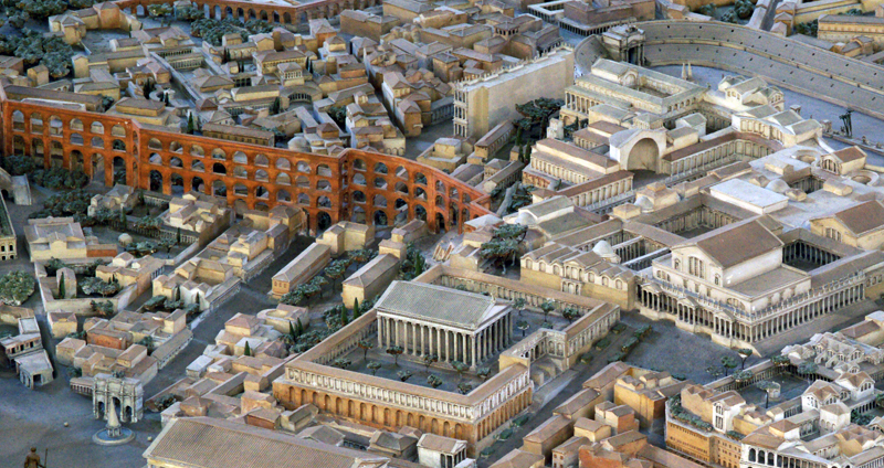 Aqueduc de l'Aqua Claudia alimentant les palais du Palatin - Maquette de Gismondi