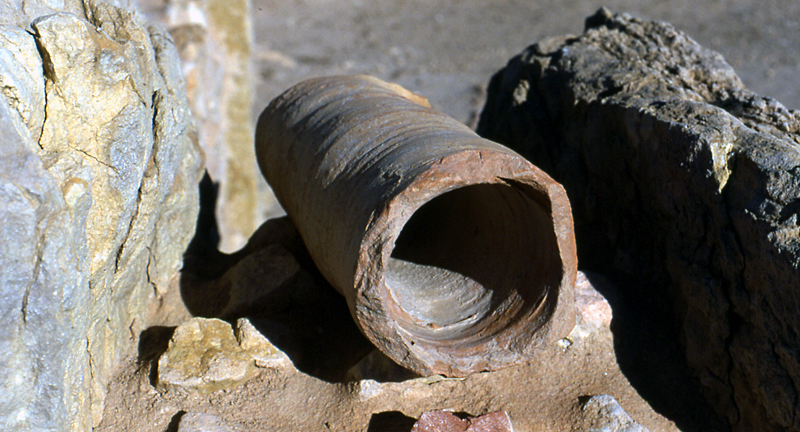 Conduite d'eau en terre cuite dégagée dans une des rues de Sbeitla (Tunisie), 2001 - © Agnès Vinas
