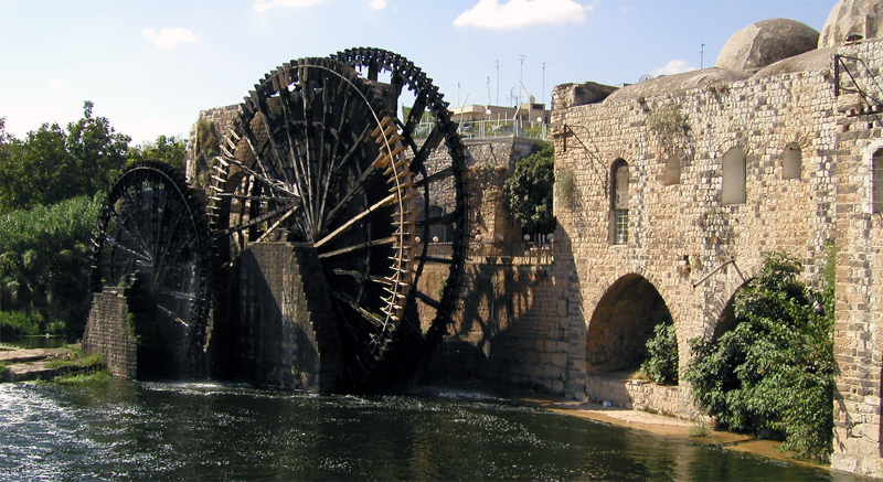 Roues hydrauliques modernes (norias) à Hama en Syrie - Wikimedia Commons
