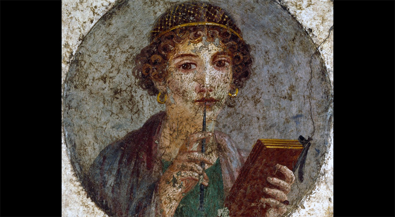 Portrait dit de Sappho, tenant tablettes et stylet - Fresque de Pompéi - 55-79 apr.JC -