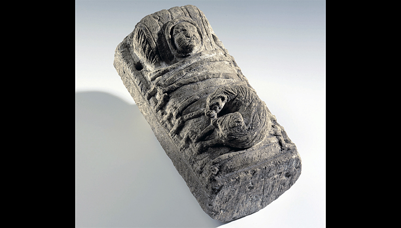 Enfant emmailloté dans son berceau (ex-voto) provenant du sanctuaire des Bolards, Nuits-Saint-Georges, France
