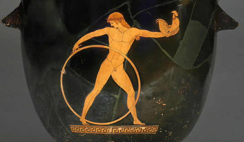 Ganymède au coq et au cerceau - Cratère grec à oreillettes à figures rouges, vers 490 av.JC - Musée du Louvre