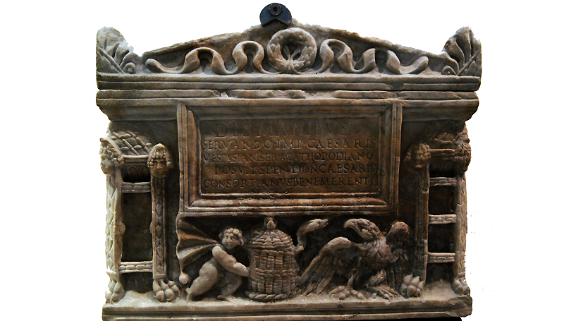 Urne funéraire avec fronton et acrotères de l'esclave de Vespasien Servandus Agathopodianus - 69-79 apr.JC