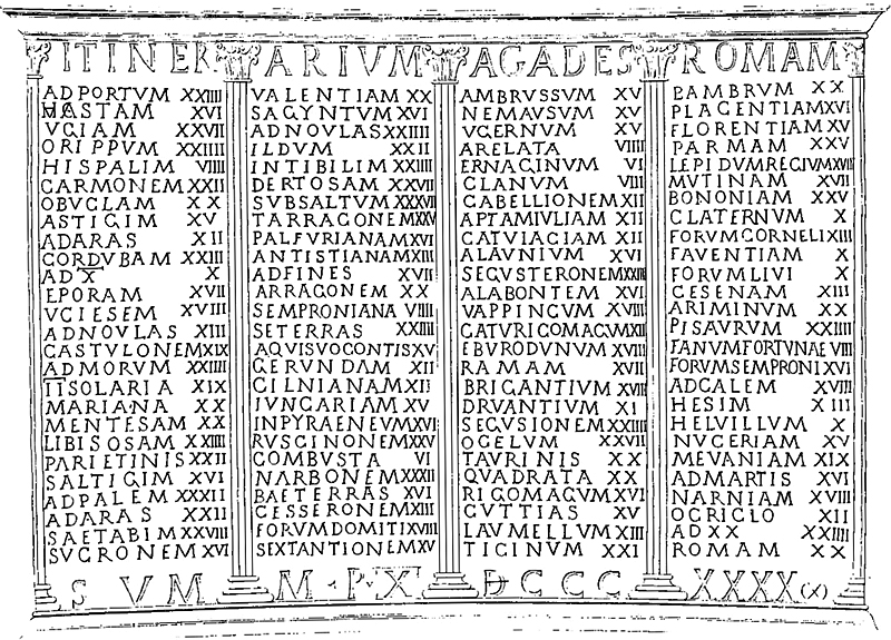 Mansiones du premier gobelet de Vicarello indiquant les étapes de Gadès à Rome - Wikimedia Commons