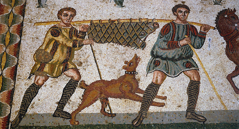 Vestibule de la Petite Chasse, mosaïque du IVe s. apr.JC - Villa Casale, Piazza Armerina, Sicile