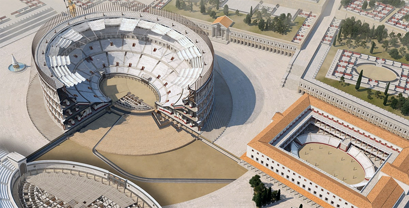 Reconstitution du Colisée et, à droite, du Ludus Magnus à Rome - © Colosseum Rome Tickets