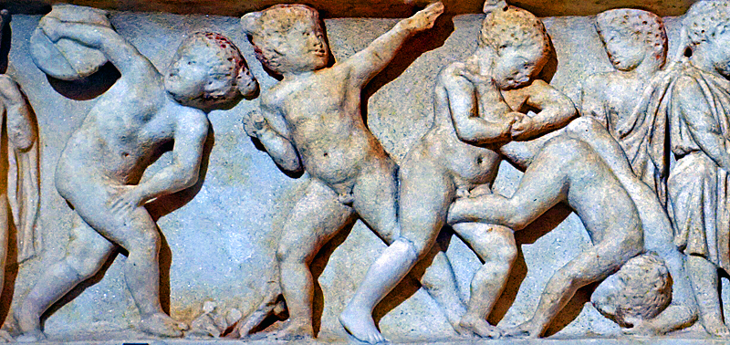 Amours s'exerçant à la palestre - Devant de sarcophage, début IIIe s. apr.JC - Musée du Louvre, Paris (France), 2002 - © Agnès Vinas