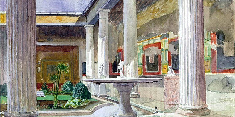 péristyle d'ue maison de Pompéi, restitué