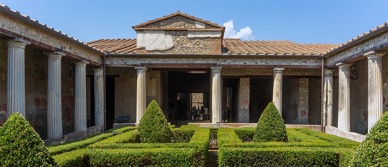 Jardin intérieur de la maison du Ménandre à Pompéi -