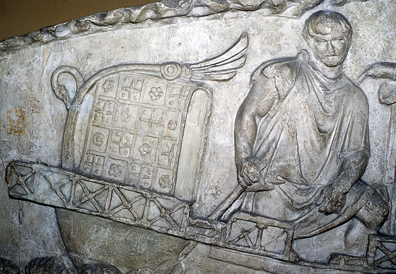 Timonier à l'arrière d'un navire de Trajan - Moulage de la colonne Trajane - Musée de la Civilisation romaine, EUR, Rome, 2013