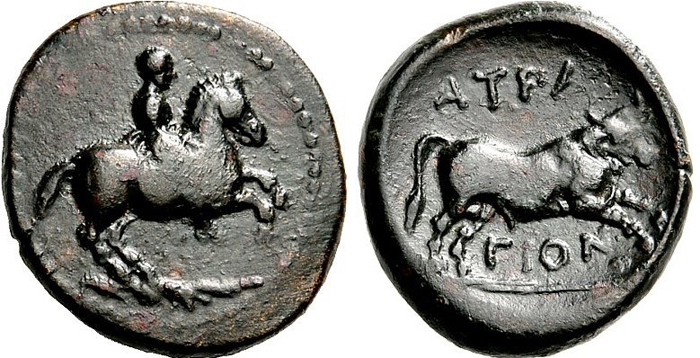 Petite monnaie de cuivre de la Grèce, qui valait le quart ou le cinquième d'une obole (Vitruv. III, 1 ; Plin. H.N. XXI, 109).