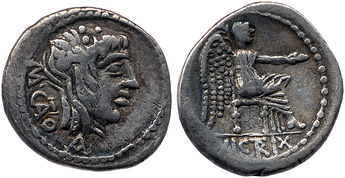 Quinaire de Marcus Porcius Cato frappé en 89 av.JC - © The Trustees of the British Museum