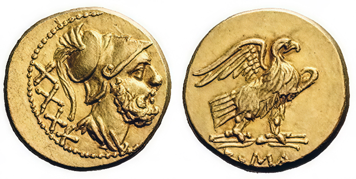 Aureus de 40 as (XXXX), émis temporairement en 211 av.JC durant la seconde guerre punique - ANTIQVA