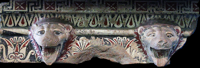 Corniche en terre cuite du temple d'Héra à Paestum - Musée de Paestum, Italie, 1977 - © Charles Cavenel