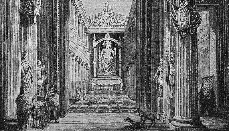 Reconstitution de l'intérieur du temple de Jupiter Optimus Maximus à Rome - Albert KUHN, Roma, 1925, p.81