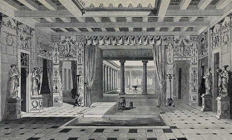 Reconstitution de la maison de Pansa à Pompéi - in L’Habitation Humaine de Charles Garnier et A. Ammann (Hachette, 1892)