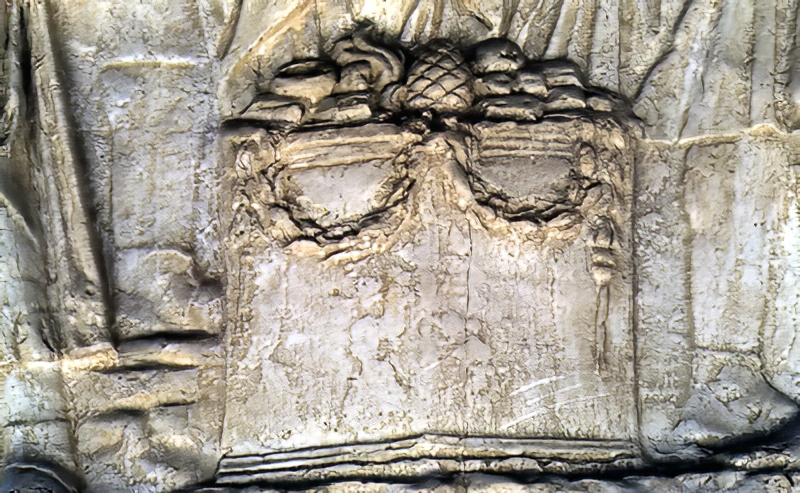 Autel du sacrifice, couvert de fruits et de pommes de pin - Colonne Trajane, 113 apr.JC - Moulage offert par le musée de Bucarest