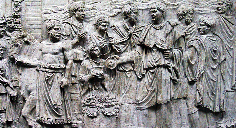 Trajan verse une libation lors d'un sacrifice sur le Danube - Copie de la colonne Trajane, 113 apr.JC
