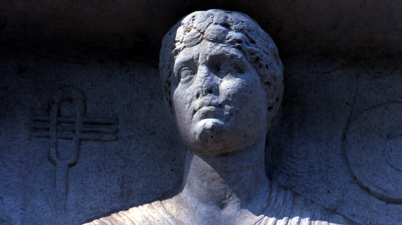 Stèle funéraire des Rabirii - Tête de Usia Prima sac(erdos) Isidis, à côté de laquelle se trouve le