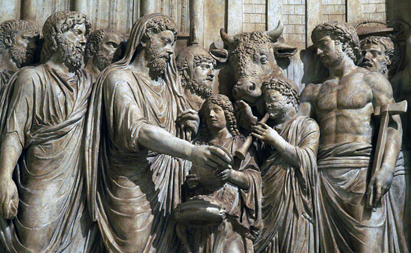Marc-Aurèle offre un sacrifice, secondé, devant le foyer, par le camillus et le