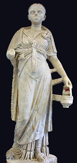 Prêtre, prêtresse ; terme très général désignant les prêtres des deux sexes, de quelque classe ou collège sacerdotal qu'ils fissent partie ; on comprend donc sous ce titre l'augur, le pontifex, le flamen, la vestalis, et d'autres encore qui sont cités, avec le nom qui leur était propre, dans la table analytique (Varro, L.L. V, 83 ; Cic. de Leg. II, 8 ; Verr. II, 5, 45 ; Ov. Fast. V, 573). |