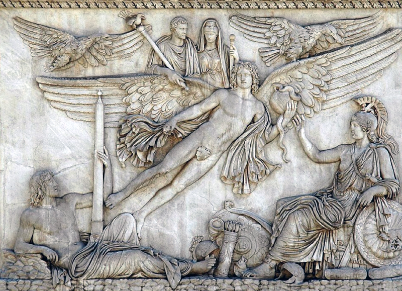 Bas-relief représentant l'apothéose d'Antonin et Faustine - Base de la colonne d'Antonin le Pieux - vers 161 apr.JC