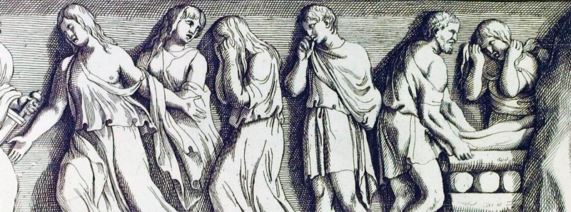 Sarcophage des funérailles de Méléagre (détail) - Gravure de Pietro Santi Bartoli in Admiranda romanarum antiquitatum, planche 71