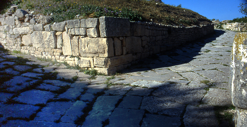 A cet endroit, il y a toujours une fontaine dans la ville de Pompéi, comme on le voit dans notre specimen, qui présente une vue d'une des rues de cette ville.