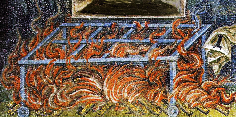 Saint Laurent devant le gril de son supplice - Mosaïque de la basilique Galla Placidia de Ravenne (Italie)