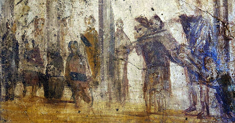 Fresque originale de la maison de Julia Felix conservée au Musée archéologique national de Naples - Wikimedia Commons