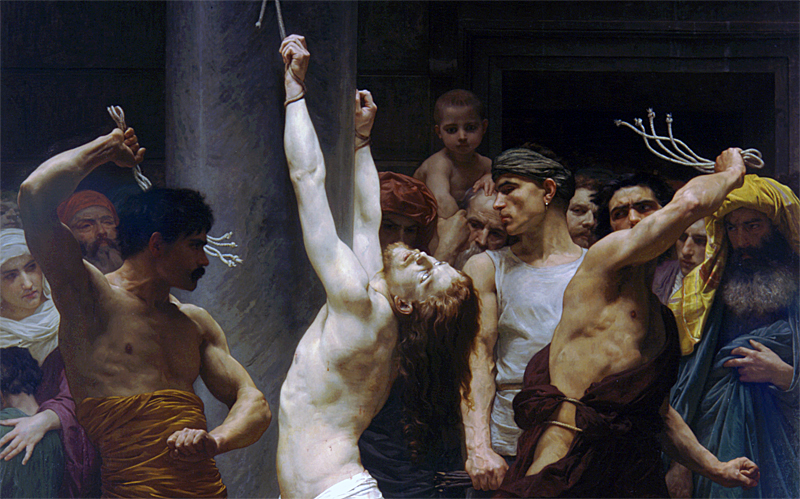 - Verges, ou fouet avec plusieurs cordes tortillées et nouées comme les nombreuses antennes du polype, qui sont désignées par le même nom (Ov. Met. IV, 367) ; il servait principalement pour châtier les esclaves (Juv. VI, 478 ; Hor. Sat. I, 2, 41 ; 3, 119 ; Marcell. Dig. 48, 19, 10). Quoique le mot soit un diminutif de flagrum, ce fouet était en réalité beaucoup plus dur ; le diminutif en effet ne s'applique qu'à la finesse des fibres qui le composaient, mais cette finesse même augmentait la douleur des coups. Aussi est-il caractérisé par l'épithète horribile. Dans certains cas, il donnait la mort (Hor. ll.cc.) Les blessures qu'il faisait sont toujours exprimées par des mots qui indiquent l'action de couper, ainsi caedere, secare, scindere (Hor. Juv. Il. cc.; Ov. Ibis, 183), par opposition à ceux qui accompagnent flagrum et qui expriment l'action de frapper lourdement ou avec force, comme pinsere ou rumpere. Le fouet tenu par le personnage qu'on voit debout dans la gravure, et copié d'après l'anse d'un pot de bronze trouvé à Pompéi, représente sans doute un de ces instruments ; mais on concevra facilement que la figure est trop petite pour donner une idée réelle de l'objet.