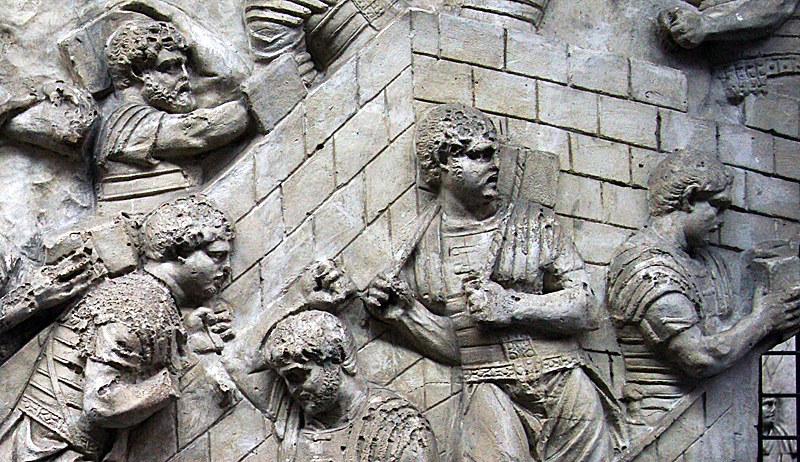Construction d'un fort romain par les légionnaires - Copie de la colonne Trajane - Musée de la civilisation romaine, EUR, 2001
