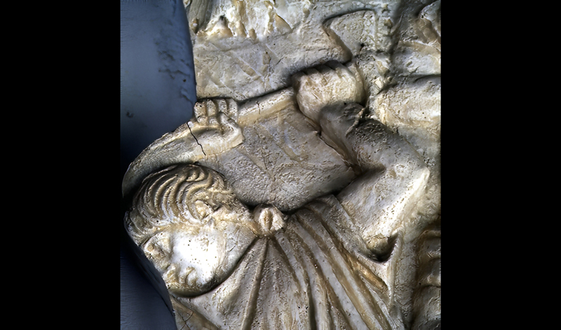 Soldat occupé à abattre des arbres - Colonne Trajane, 113 apr.JC - Moulage offert par le Musée de Bucarest