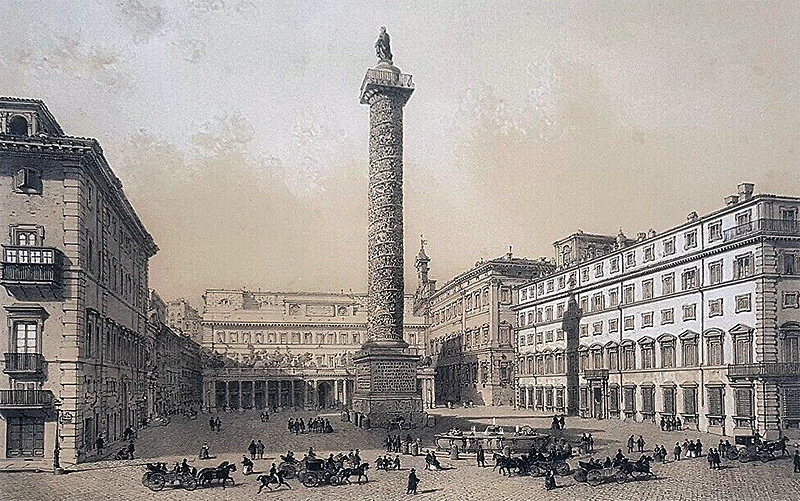 La colonne de Marc Aurèle sur la piazza Colonna - Gravure de Ph. Benoist - 1870