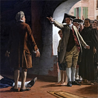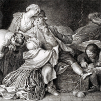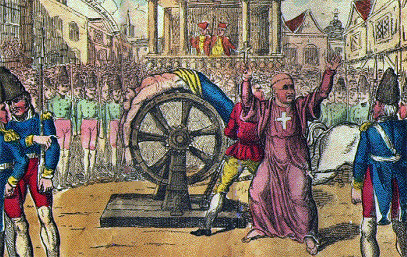 "The cruel death of Calas, who was broke on the wheel at Toulouse, March 9th, 1762" - Frontispice d'un livre anglais de colportage