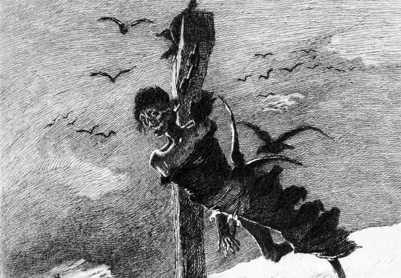Illustration du chapitre « Bataille entre la mort et la nuit » dans l'éditon anglaise de l'Homme qui rit - Estes and Lauriat, 1869