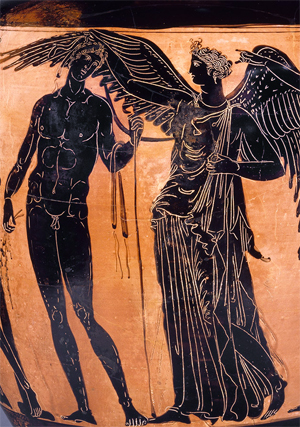 Quant à la trêve olympique, elle n'imposait la suspension d'éventuelles hostilités que le temps de garantir à tous les athlètes compétiteurs un aller et retour sans danger entre leur cité et Olympie : reviendrait le temps de la guerre si nécessaire, mais après un temps dédié aux dieux. |